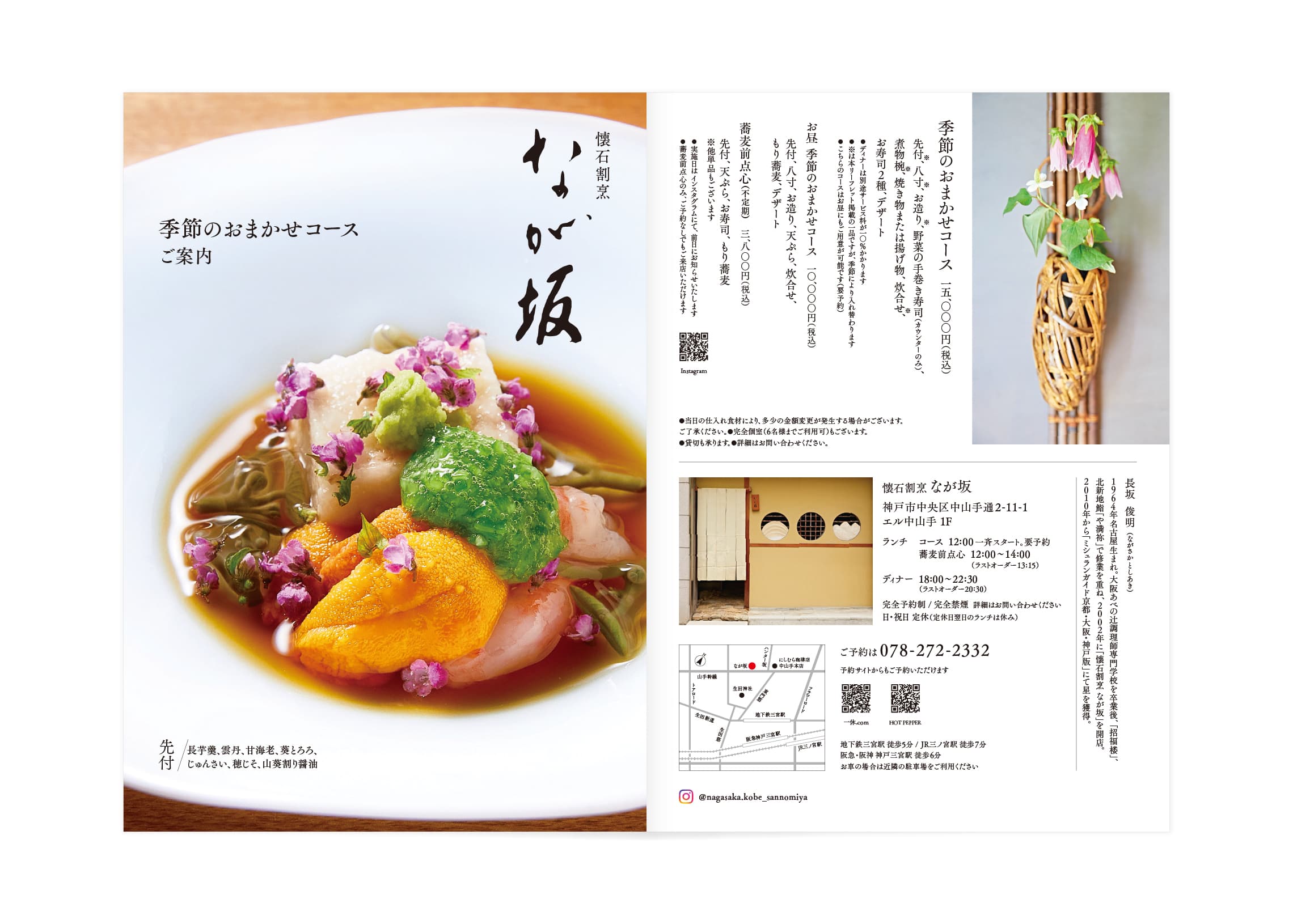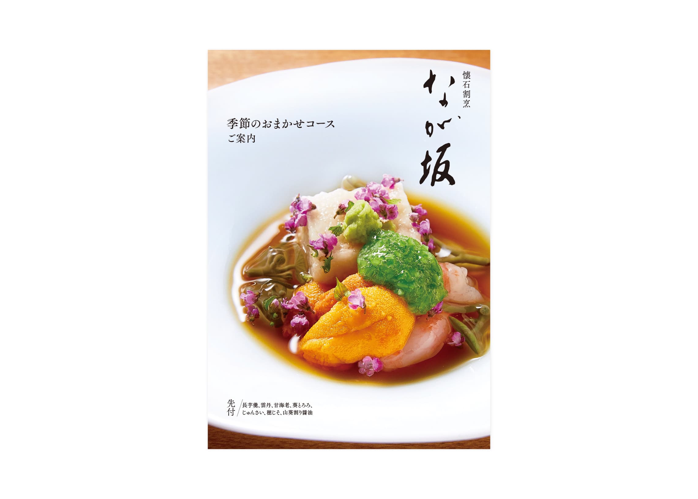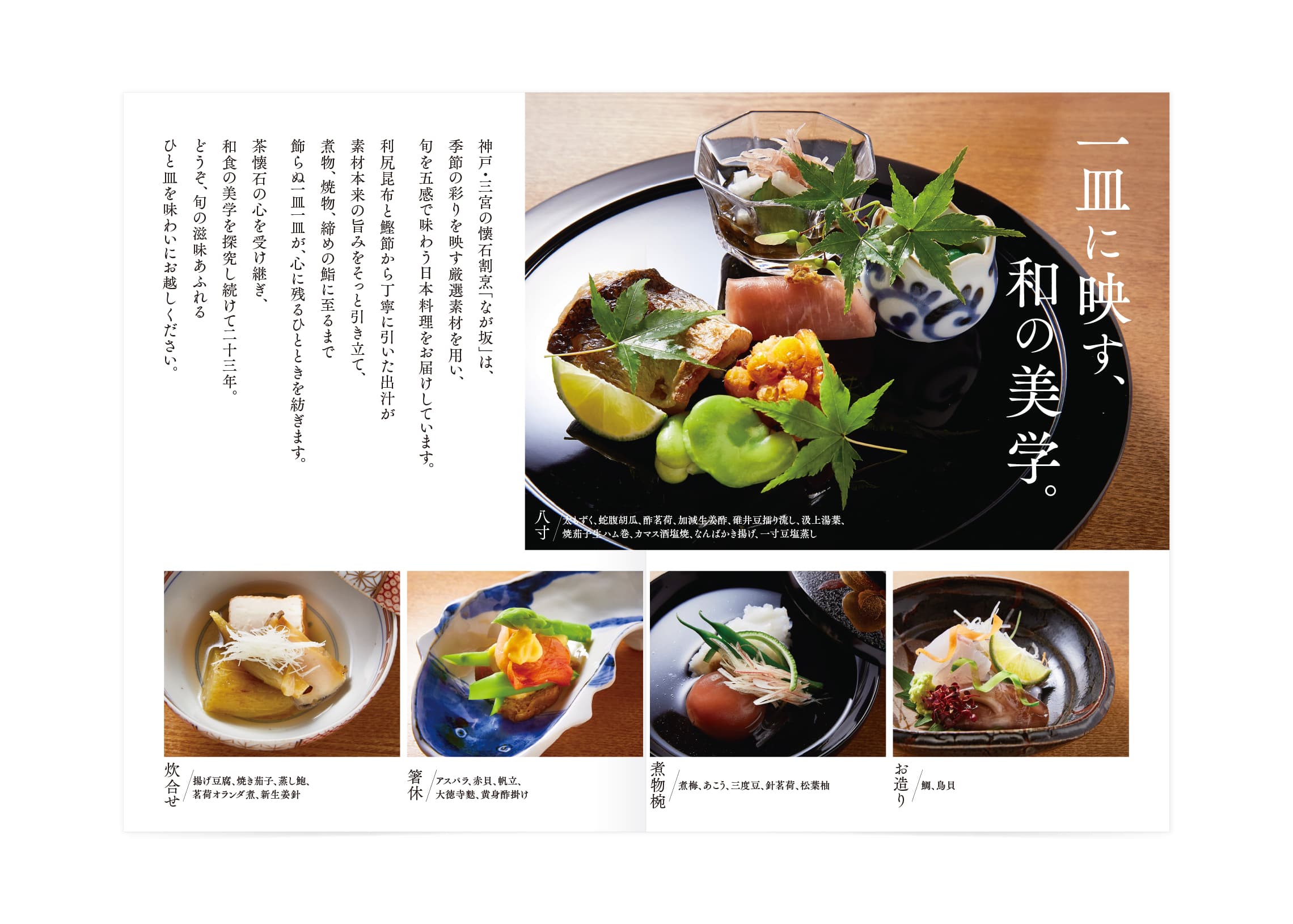 2010年から「ミシュランガイド京都・大阪・神戸版」にて星を獲得している、懐石割烹「なが坂」の 店舗紹介リーフレット を制作しました。